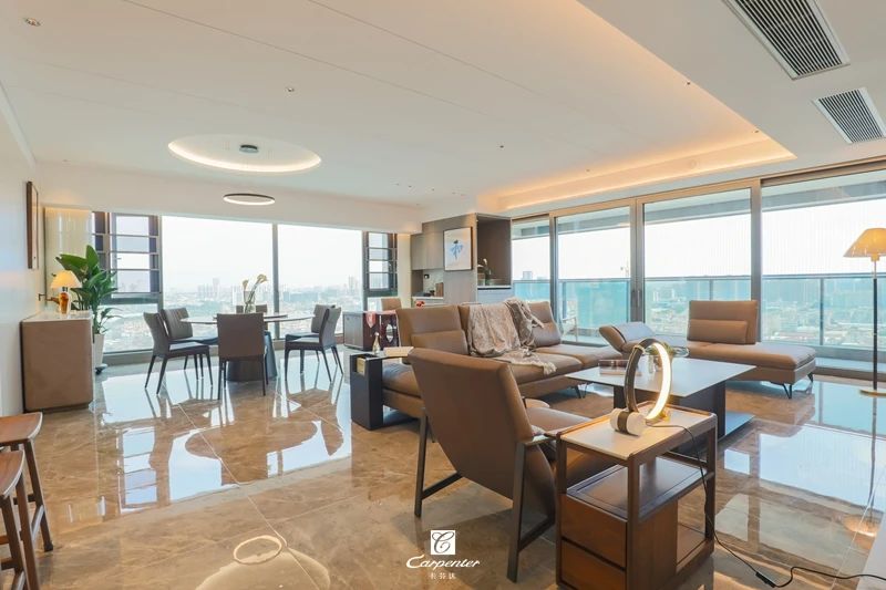 本案是一套近250㎡的現(xiàn)代輕奢大平層公寓。設計師以簡約、實用和精致為特色,注重居室空間布局審美與使用功能,將自然與奢華相融合,東西分區(qū)、動靜分明,帶來更加舒適、便捷的生活方式,遇見生活的格調。